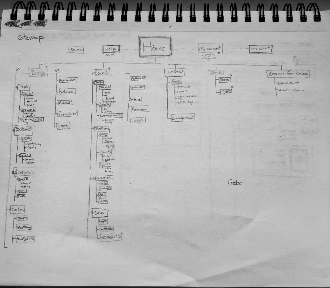 After analyzing what was most important to True Spirit's users, I looked at variety of (desktop and mobile) e-commerce sites and drew a skeleton for each.
